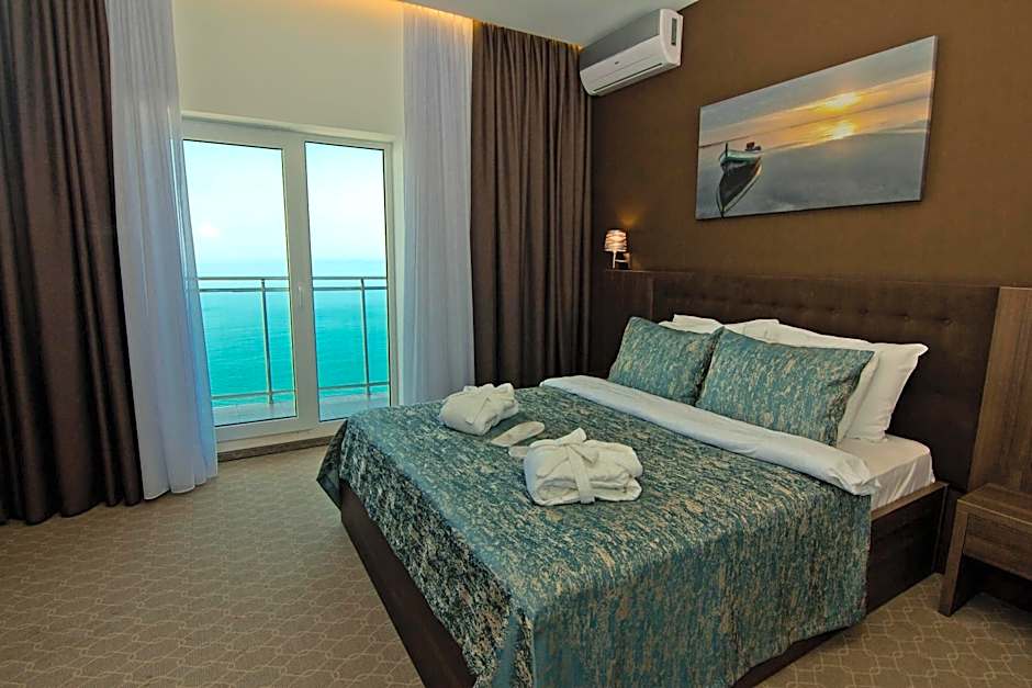 Room choices lean toward sea-view options, with several configurations featuring balconies to enjoy the scenery. Examples include Standard, Double, Sea View, Balcony; Standard, Twin, Sea View, Balcony; and more upscale options like Suite, Sea View, Balcony and Deluxe Suite, Sea View, ensuring there are seabreeze-worthy stays for couples or families.
